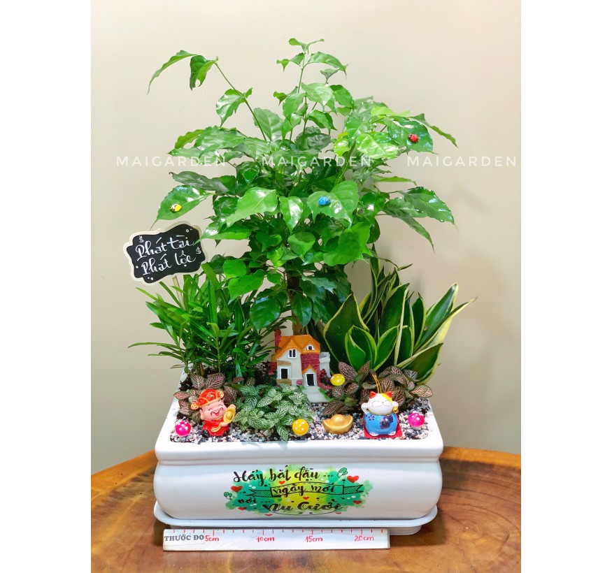 CHẬU CÂY HẠNH PHÚC MIX PHÁT TÀI, KIM TIỀN, CẨM NHUNG ĐỎ IN HÌNH THEO...