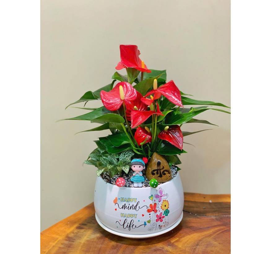 Chậu cây hồng môn mix cẩm nhung - CHM630
